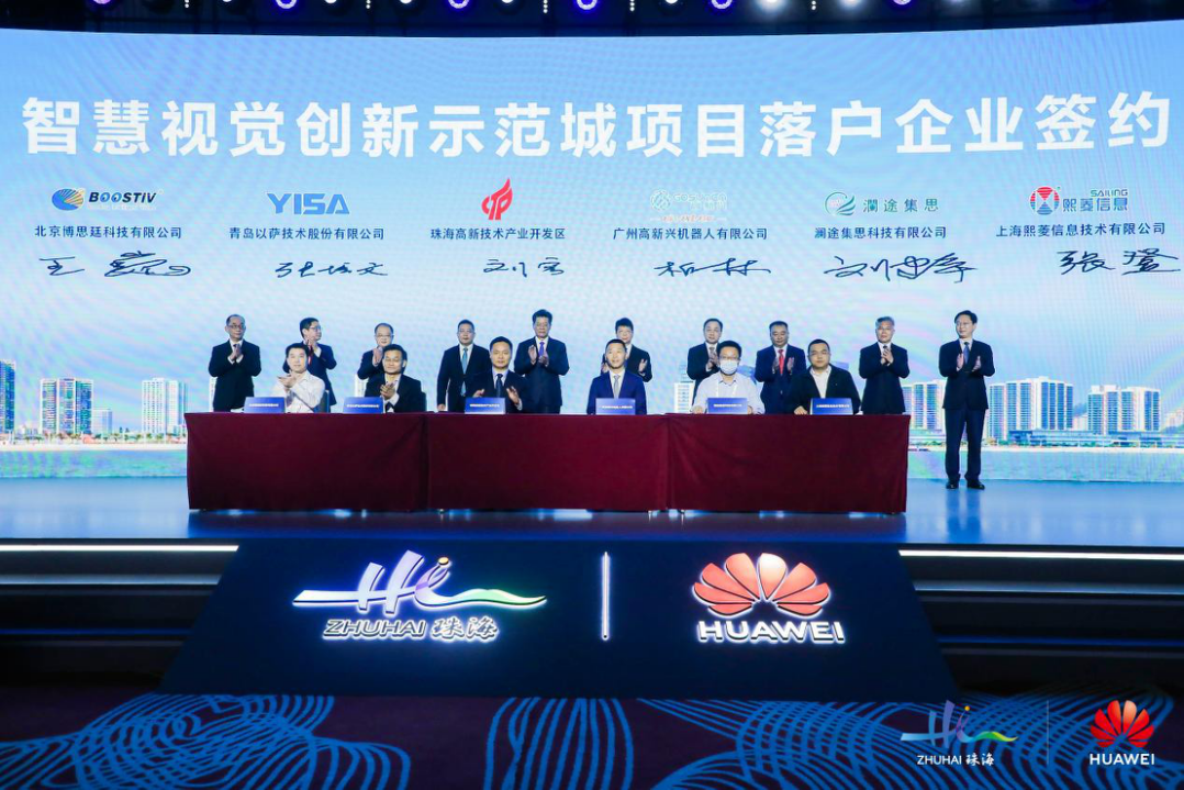 本次峰会由珠海市政府与华为技术有限公司联合主办,峰会上午发布并解读珠海高新区智慧视觉白皮书,同时举办智慧视觉创新示范城项目落户企业签约仪式,会上公海jcjc5500信息集团SZ.300588)全资子公司上海公海jcjc5500信息技术有限公司作为落户企业之一,公司CTO张登与珠海政府签署合作协议,助力珠海智慧视觉产业基地蓬勃发展。